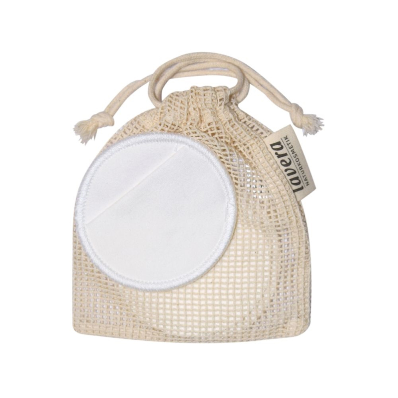 Opakovaně použitelné odličovací tampony lavera jsou dodávány v praktickém sáčku na praní, což z nich činí dokonalou udržitelnou alternativu pro opakované použití při péči o pleť.